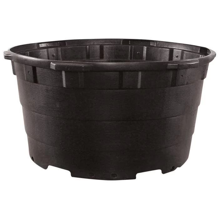 Haviland Nursery Containers are the reliable choice for durability and performance. Our containers are the heaviest blow molded containers in the industry, ensuring their resilience in demanding environments. With our unique Scalloped Top Ring, the container shape is maintained, minimizing trunk damage and preventing creases and bends. This enhances stability during shipment and allows for higher product shipping densities, reducing overall shipping costs. The Rounded Top Rim further protects the containers during transportation. Multiple handle grips make it easier to pick up smaller containers and handle empty ones. Our Radiused Stiffening Rings reduce labor in preparing the product for shipping. The Stepped Tapered Body facilitates easy tree removal with minimal labor and damage. The higher capacity drainage areas promote better root growth, reduce the chance of disease, and prevent product damage. With a Corrugated Base Channel, the chance of bottom warping is minimized. With a top diameter of 48 inches, height of 27.5 inches, volume of 176.55 gallons (668.31 liters), and trade size of 200, Haviland Nursery Containers offer the perfect solution for growing professionals. Sold individually.