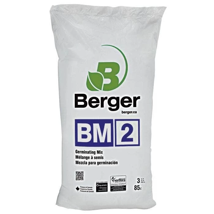 Berger BM2 Germination Mix is a distinctively formulated soil that is designed to boost seed germination in plugs, trays, or floating systems. It consists of fine peat moss, fine perlite, fine vermiculate, Dolomitic limestone, Calcitic limestone, and a non ionic wetting agent. It has a pH of 5.2 to 6.0, and comes in 3 cu ft loose fill bags.