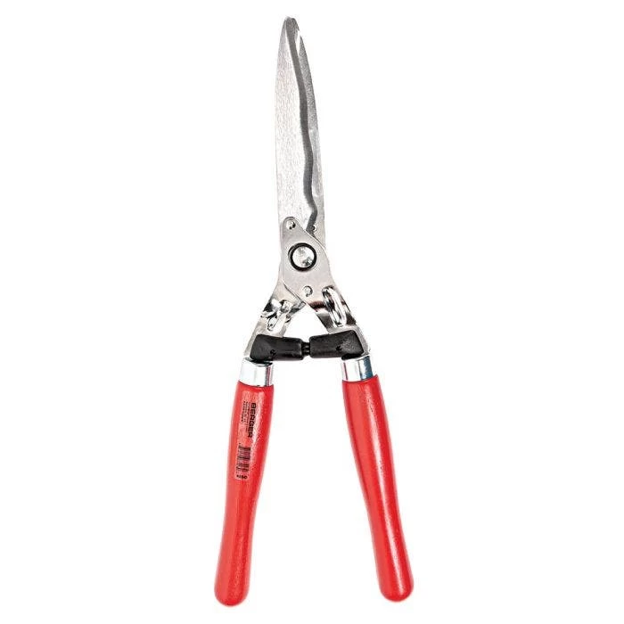 The Berger Wavy Blade Hedge Shear is made with high quality forged steel and chrome-plated wavy blades that make this shear extremely durable and long-lasting. The wavy blades give more surface area and cut extremely efficiently, preventing plant material from slipping down the blades during cut. A sap groove on each blade prevents the blades from sticking for a continual smooth cut action. The blades are self-sharpening and the tension knob can be adjusted quickly and easily. Outfitted with traditional wood handles that give this tool a great feel. Made in Germany. 23-5/8″ overall length, weight 2.2 lb
