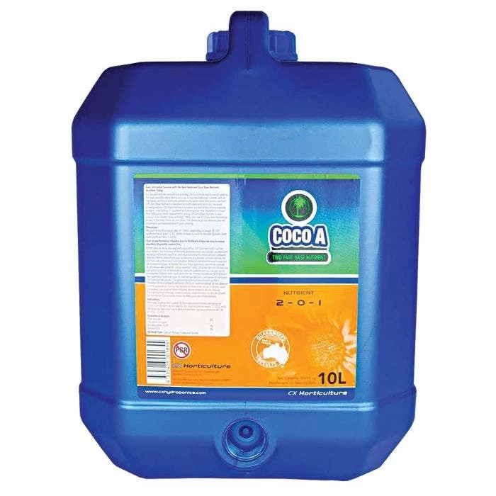 Each bottle of CX Horticulture Coco Base A contains 10 liters of the fertilizer.