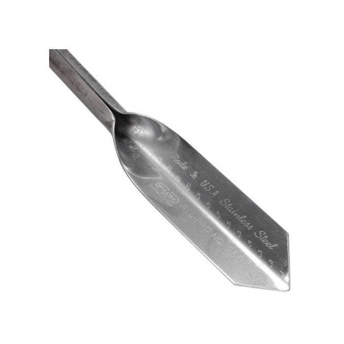 These professional grade stainless steel trowels are constructed of a single piece of 16 gauge metal. Featuring depth markings. Pro quality 16ga. Stainless steel trowel has an overall length of 18″ to provide added reach or two handed use for more leverage in stubborn soils. 2″ blade width makes it excellent for fine cultivating and weeding. Weight .75 lb. Wilcox proudly makes this product in the USA and covers it with a lifetime warranty.