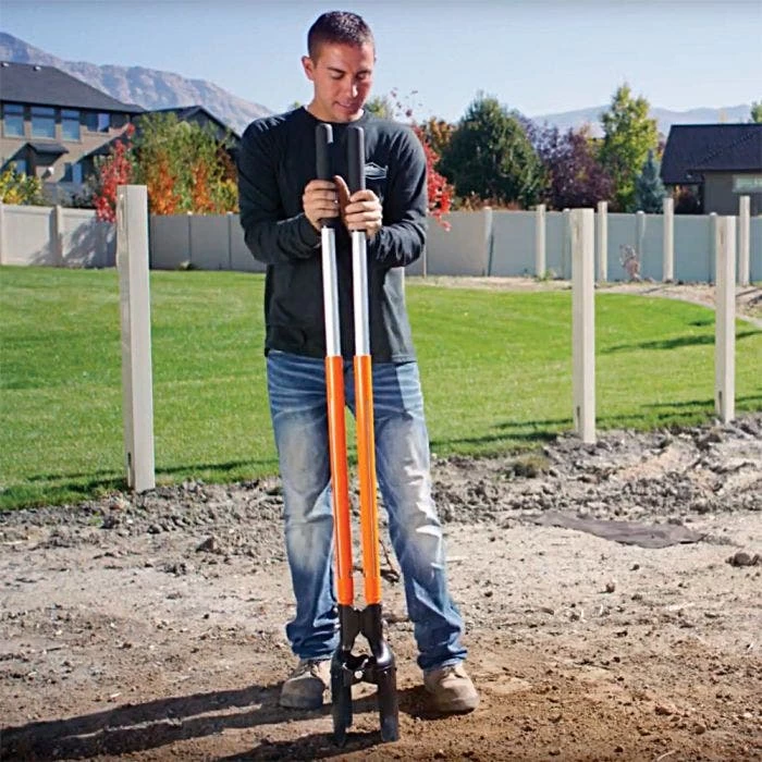 The patented SIMPOLE™ Post Hole Digger allows you to dig post holes easily, quickly, and accurately. This tool hammers blades into the soil while requiring you to lift only the weight of the handles. With this method, the blades rest right on the mark the entire time. Graduated depth markings on the side of the handles provide accurate measurements at a glance.