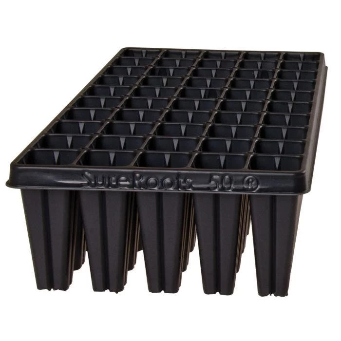 Each cell in the T O Plastics SureRoots Forestry Tray has a size of 2″ wide and 5″ deep.